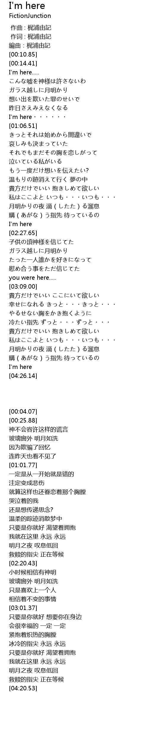 | [01:01.77] | I'm here・・・・・・ |