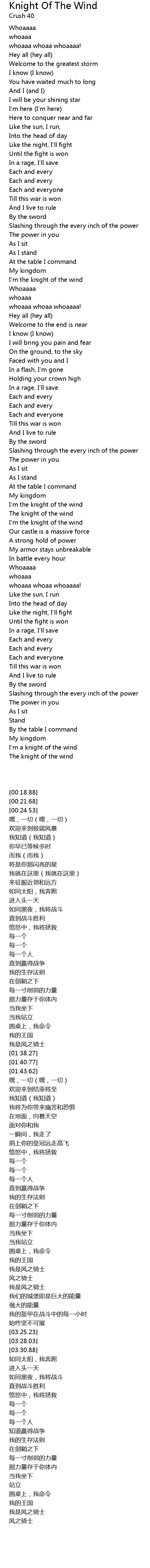 I'm the knight of the wind |