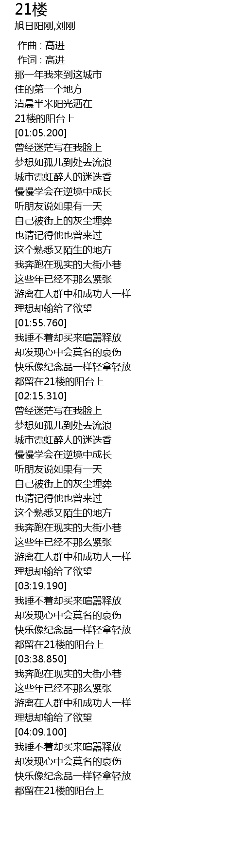 | [01:01.800] | 21 lóu de yáng tái shàng |