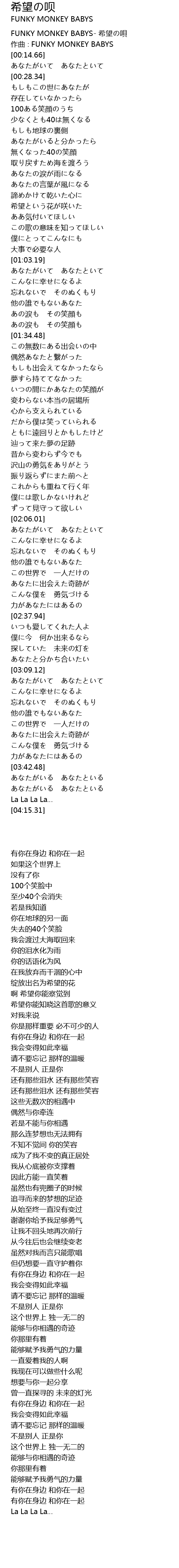 | [00:01.66] | FUNKY MONKEY BABYS- 希望の唄 |