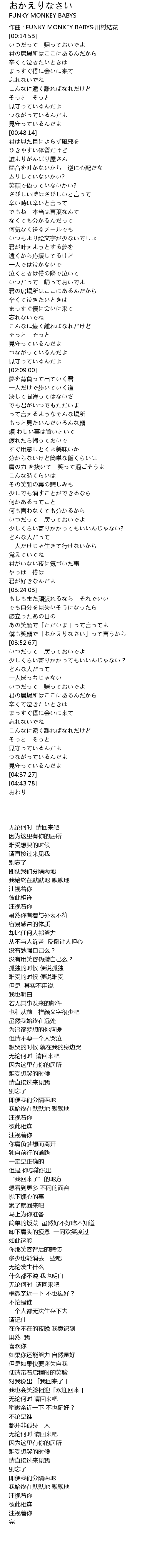 | [00:10.53] | 作曲∶FUNKY MONKEY BABYS·川村結花 |