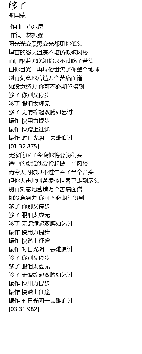 | [03:05.2] | gòu le nǐ bié yòu tíng bù |