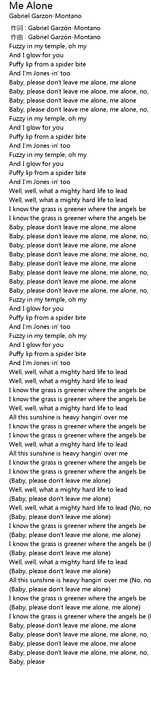 | [02:21.911] | Baby, please don' t leave me alone, me alone |