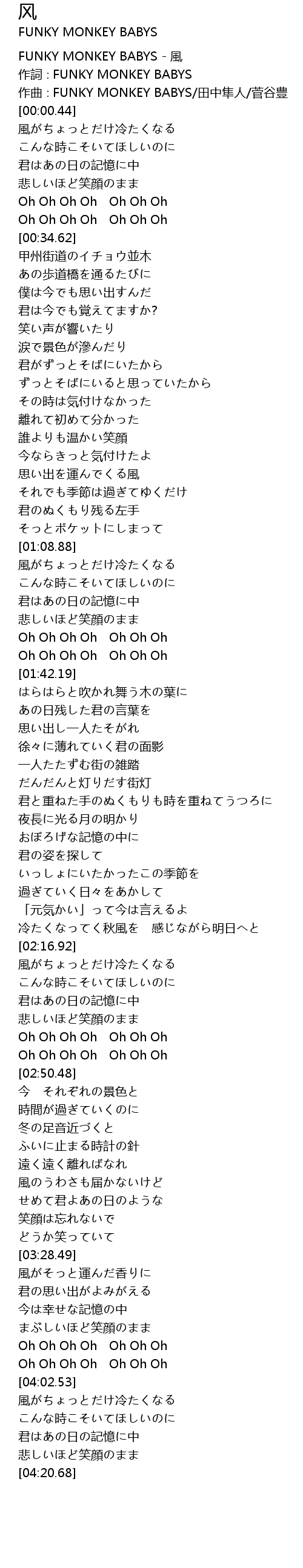 | [00:00.04] | FUNKY MONKEY BABYS - 風 |