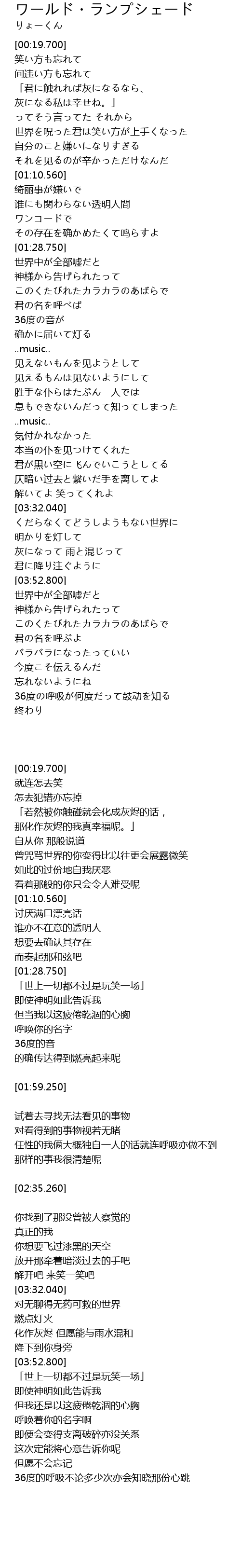 | [00:50.650] | 世界を呪った君は笑い方が上手くなった |