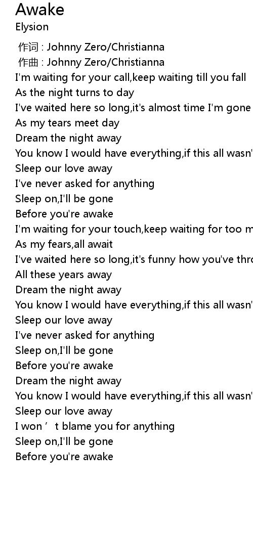 | [00:29.731] | I' m waiting for your call, keep waiting till you fall |