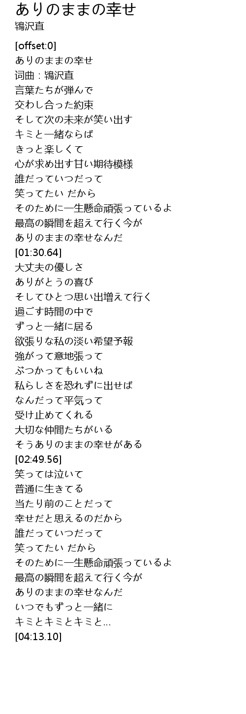 | [00:00.00] | ありのままの幸せ |