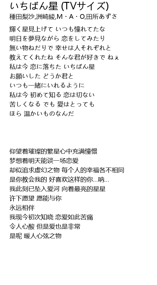 | [00:47.88] | 私は今 恋に落ちた いちばん星 |