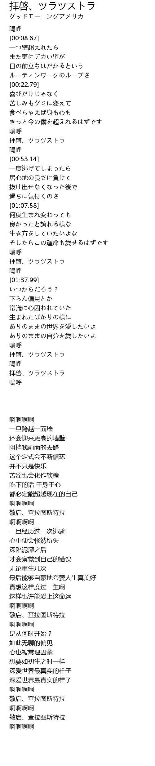 拝啓、ツラツストラ |