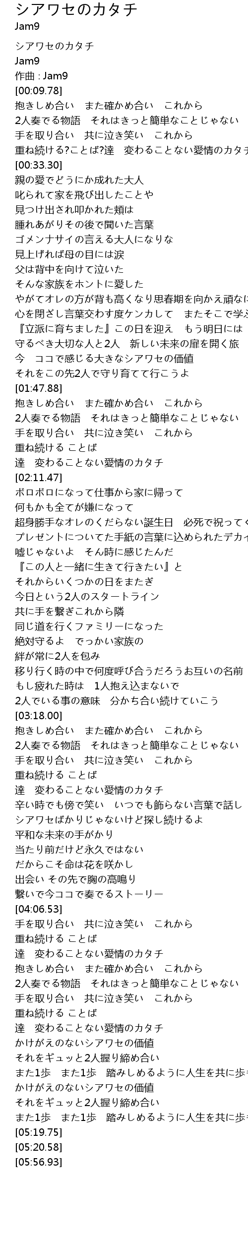 | [05:08.78] | かけがえのないシアワセの価値 |