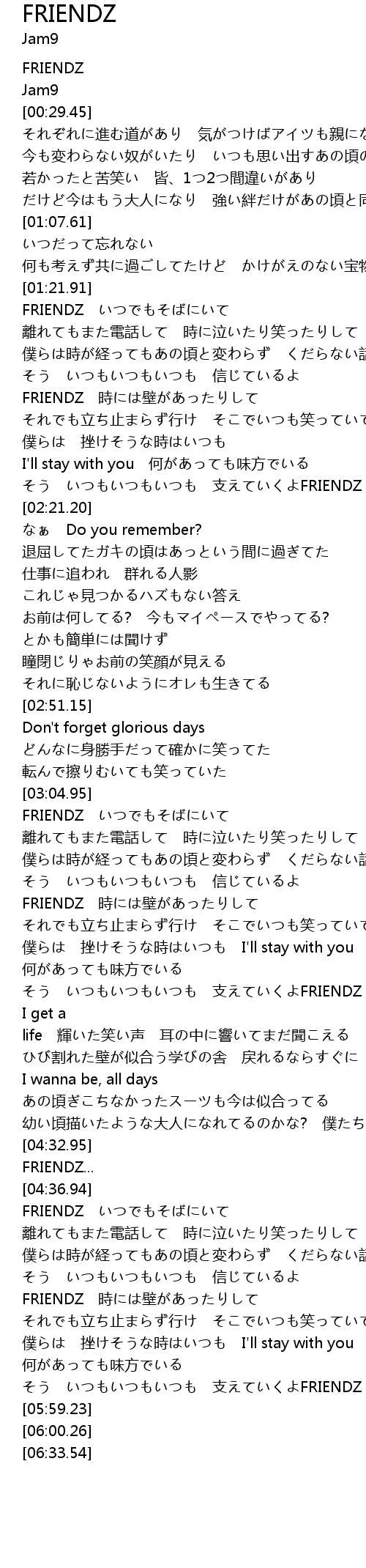 | [03:53.52] | そう いつもいつもいつも 支えていくよFRIENDZ |
