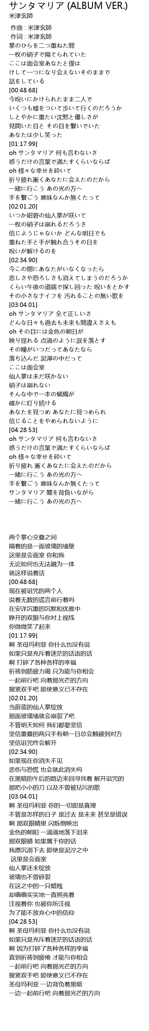 | [04:32.16] | oh サンタマリア 何も言わないさ |