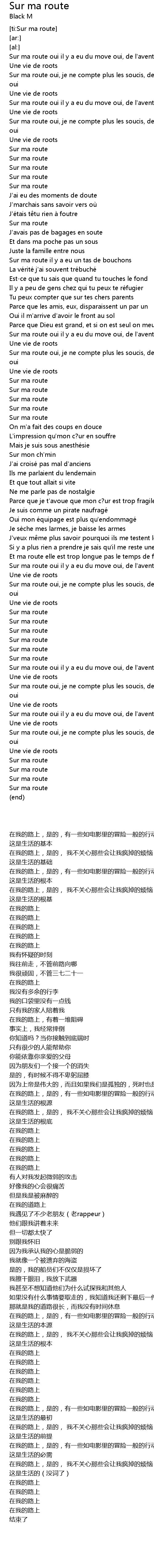 | [00:37.94] | Sur ma route oui, je ne compte plus les soucis, de quoi devenir fou oui |