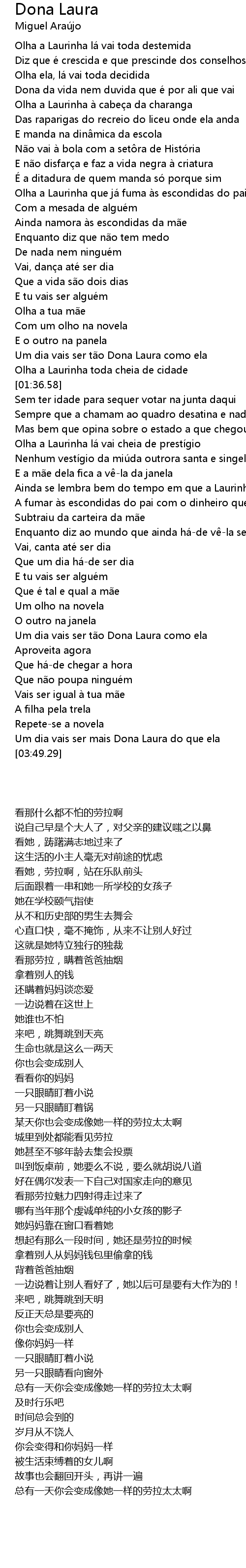 | [02:56.33] | Um dia vais ser t o Dona Laura como ela |