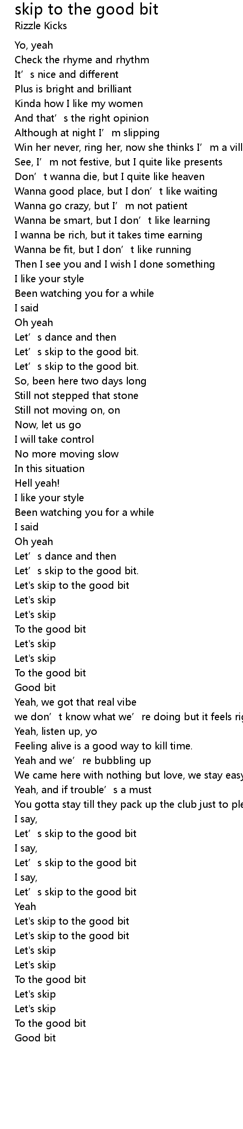 | Song | skip to the good bit |