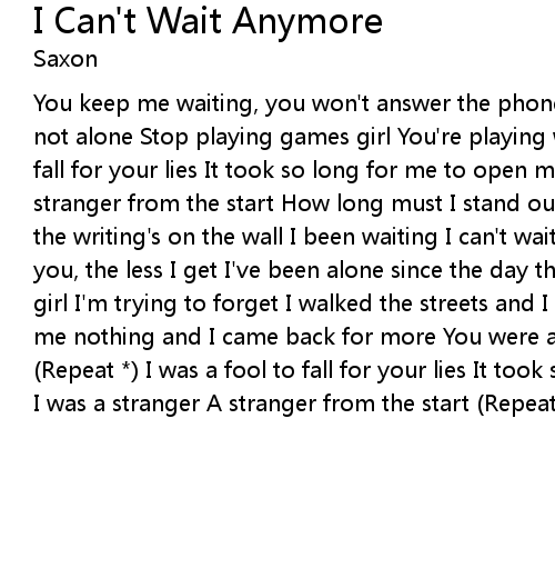 You keep me waiting, you won't answer the phone I know you're home, but you're not alone Stop playing games girl You're playing with my heart I was a fool to fall for your lies It took so long for me to open my eyes I was a stranger A stranger from the start How long must I stand out in the cold (*) Can't you see the writing's on the wall I been waiting I can't wait anymore The more I want you, the less I get I've been alone since the day that we met I'm trying hard girl I'm trying to forget I walked the streets and I stood at your door You gave me nothing and I came back for more You were a stranger A stranger to my heart (Repeat *) I was a fool to fall for your lies It took so long for me to realise I was a stranger A stranger from the start (Repeat *) |