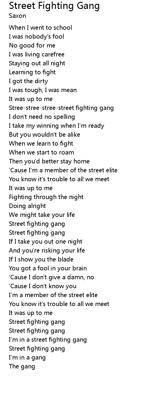 Stree-stree-stree-street fighting gang |