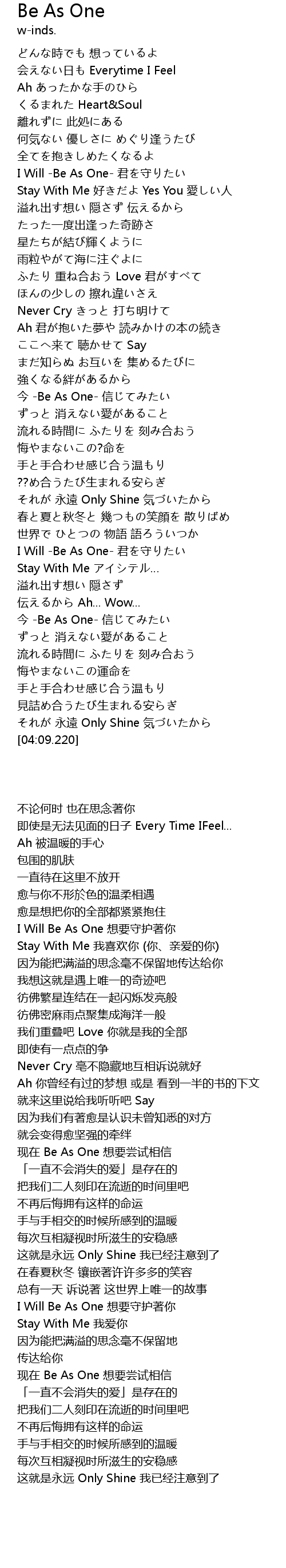 | [03:31.050] | 今 -Be As One- 信じてみたい |