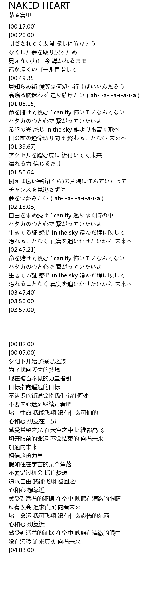 | [02:21.66] | ハダカの心と心で 繋がっていたいよ |