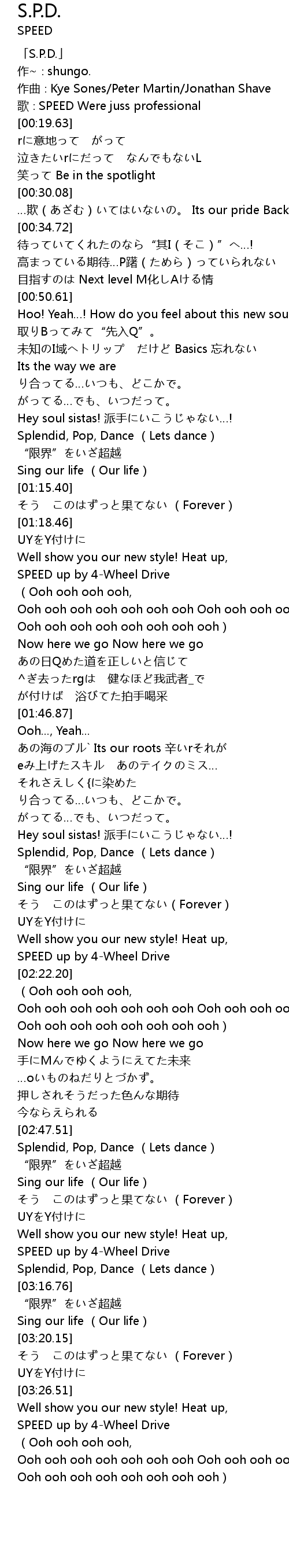 | [00:07.48] | 歌∶SPEED Were juss professional |