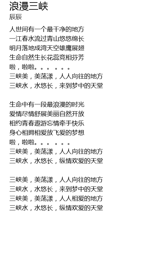 | 三峡美,美荡漾,人人相爱的地方 | |