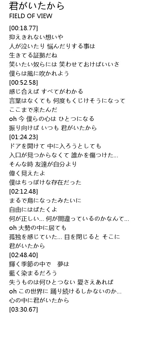 | [01:17.61] | 振り向けば いつも 君がいたから |