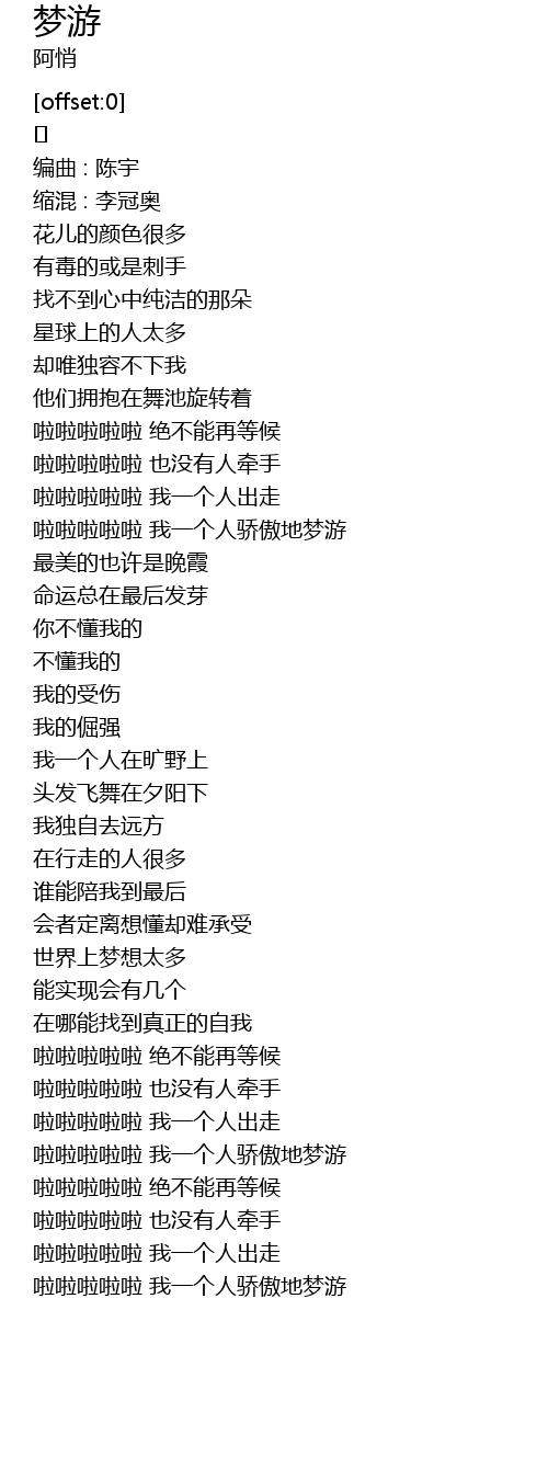 | [00:50.179] | 啦啦啦啦啦 我一个人出走 |