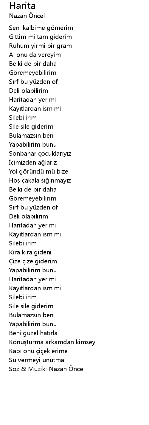 | Söz & Müzik: Nazan Öncel |