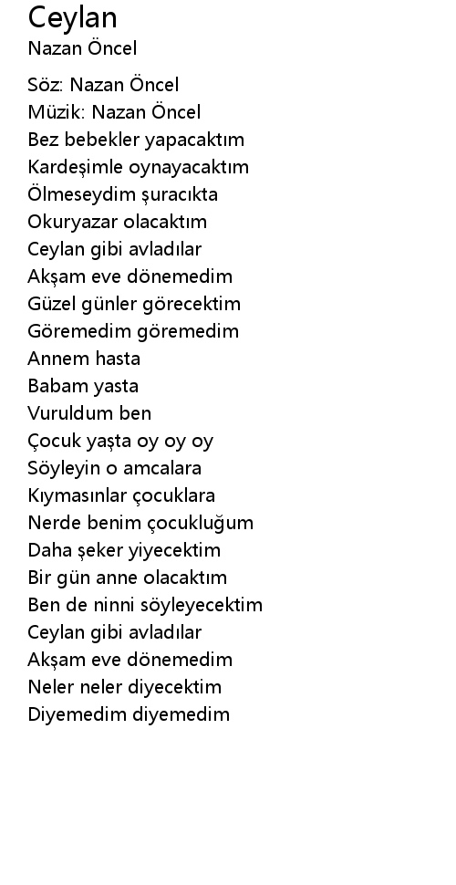 | Söz: Nazan Öncel | |