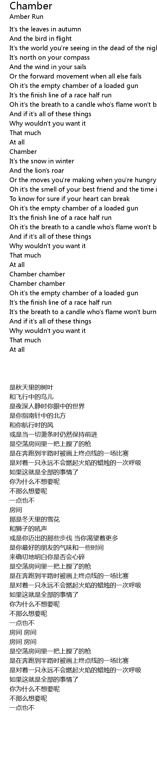 | [00:41.66] | Oh it's the empty chamber of a loaded gun |