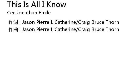 | [00:00.000] | 作词 : Jason Pierre L Catherine/Craig Bruce Thorn/Jonathan D'Abreo |