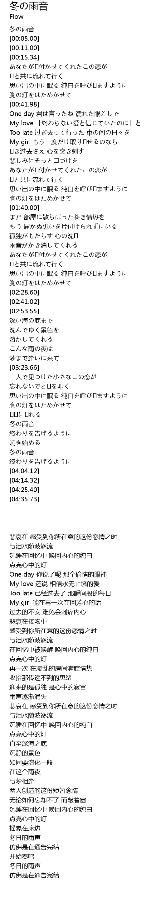 | [00:54.39] | My love 「终わらない爱と信じていたのに」と |