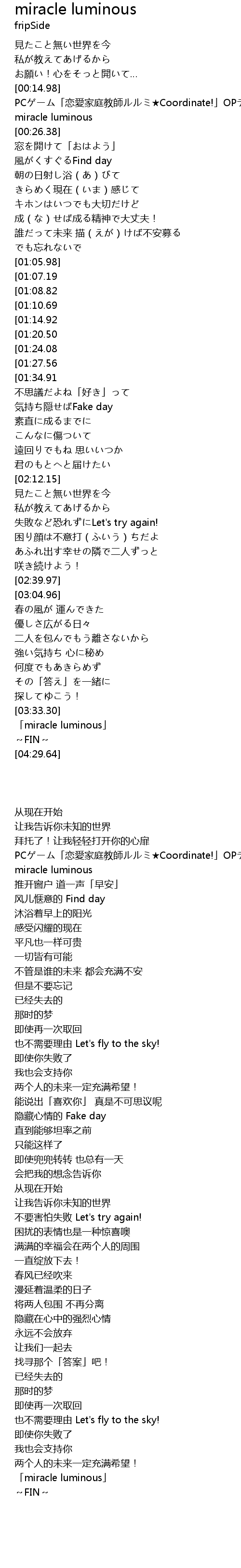 | [00:21.59] | PCゲーム「恋愛家庭教師ルルミ★Coordinate!」OPテーマ |