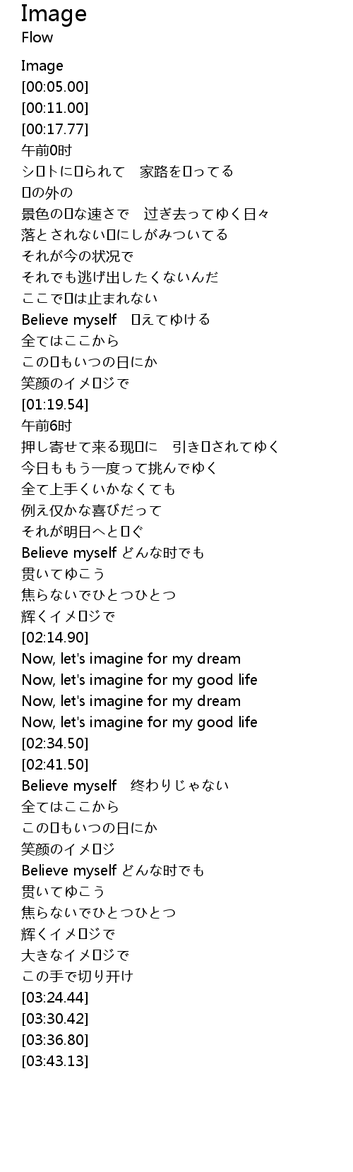 | [02:59.57] | Believe myself どんな时でも |