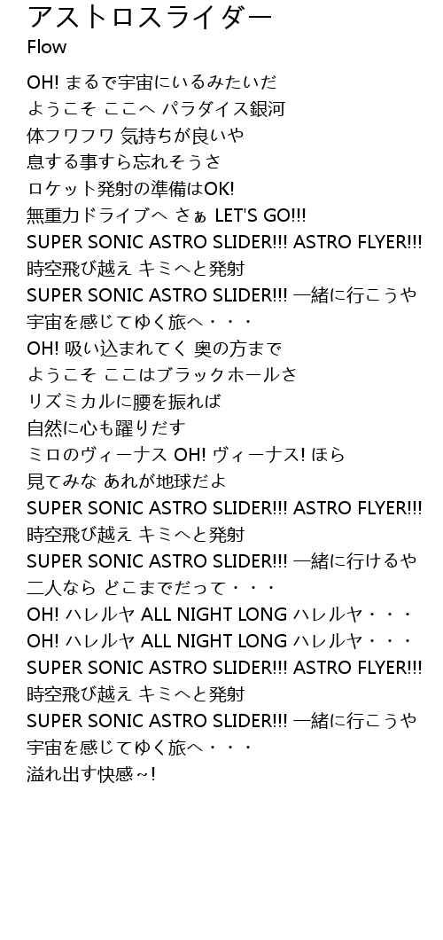 | SUPER SONIC ASTRO SLIDER!!! 一緒に行こうや | |
