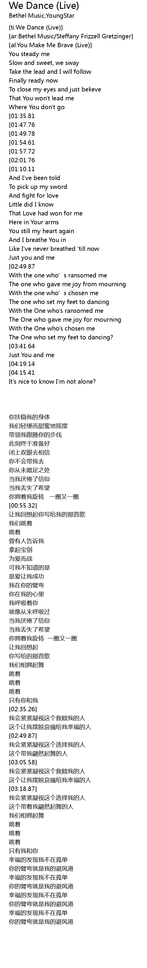 | [03:34.38][03:41.64][03:48.52][03:56.37] | We dance |