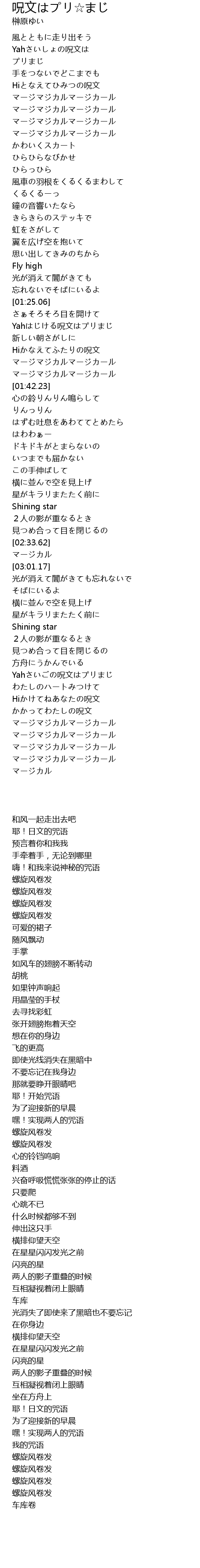 | [01:28.04] | Yahはじける呪文はプリまじ |