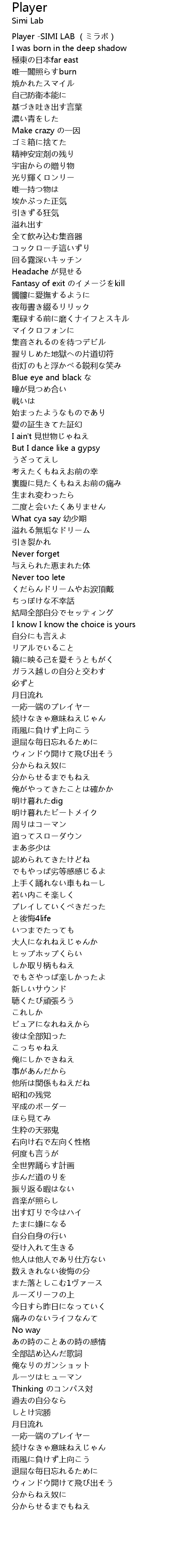 | [00:00.00] | Player -SIMI LAB (ミラボ) |