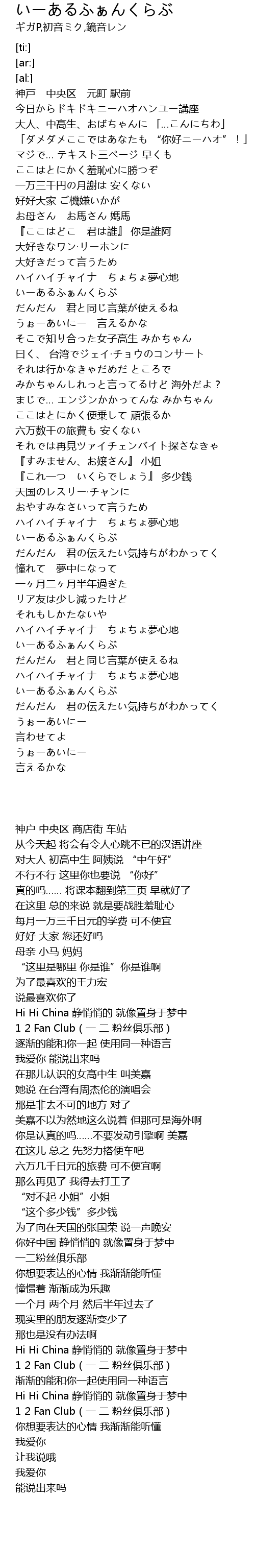 | [00:38.17] | 「ダメダメここではあなたも “你好ニーハオ”!」 |