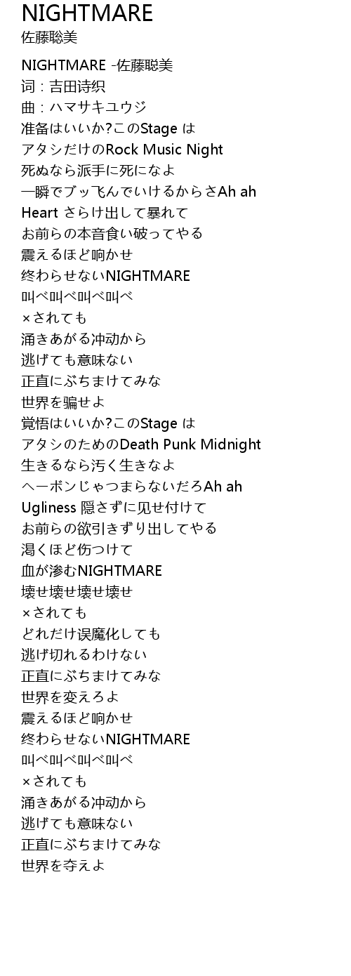 | [00:01.171] | NIGHTMARE -佐藤聪美 |