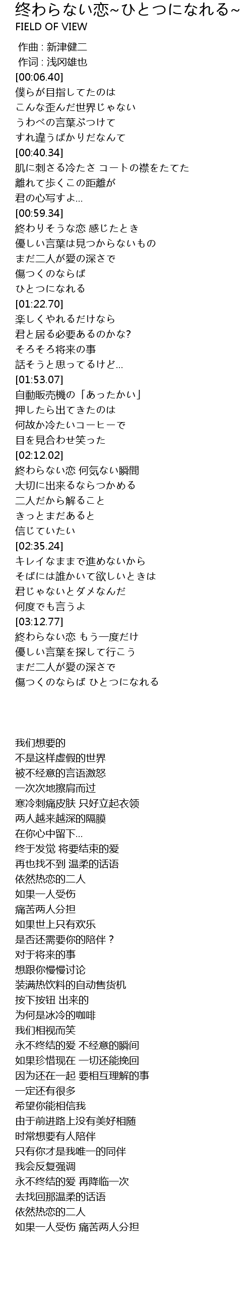 | [02:12.89] | 終わらない恋 何気ない瞬間 |