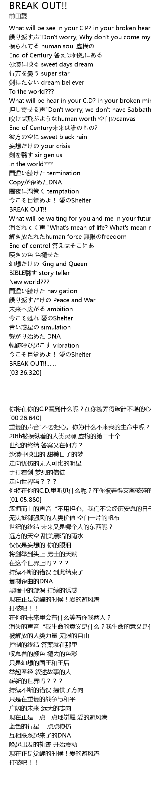 | [03:08.330] | 今こそ目覚めよ! 愛のShelter |