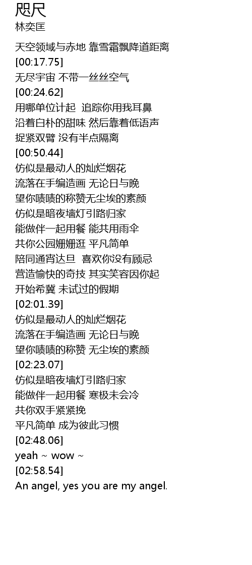 | [00:25.30] | 用哪单位计起 追踪你用我耳鼻 |