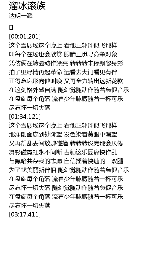 | [02:54.139] | 尽忘怀一切失落 随幻觉随动作随着急促音乐 |