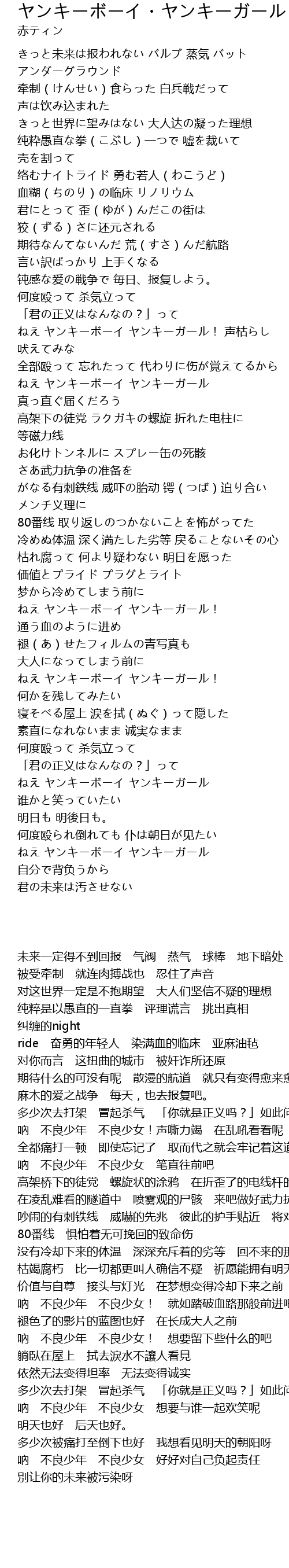 | [02:48.09] | ねえ ヤンキーボーイ ヤンキーガール 自分で背负うから |