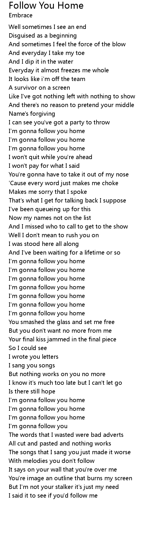 | [00:50.42] | I'm gonna follow you home |