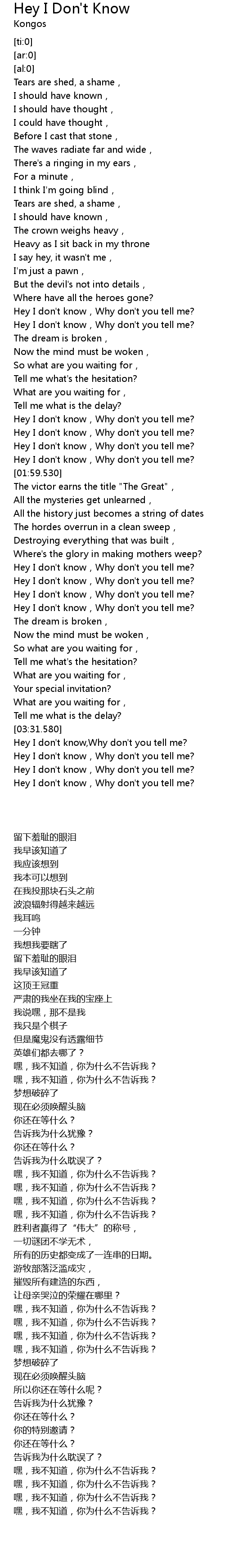 | [03:44.370] | Hey I don't know,Why don't you tell me? |