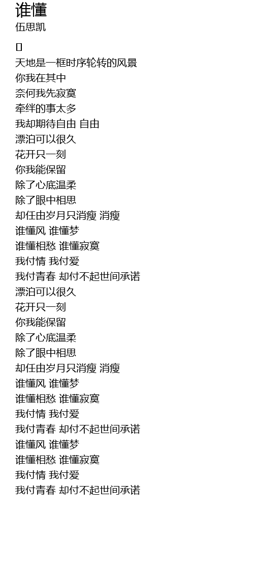 | [03:53.334] | 谁懂相愁 谁懂寂寞 |