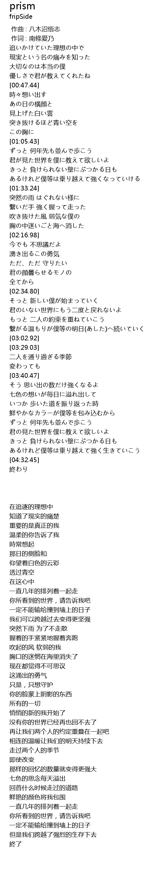 | [02:35.14] | そっと 新しい僕が始まっていく |