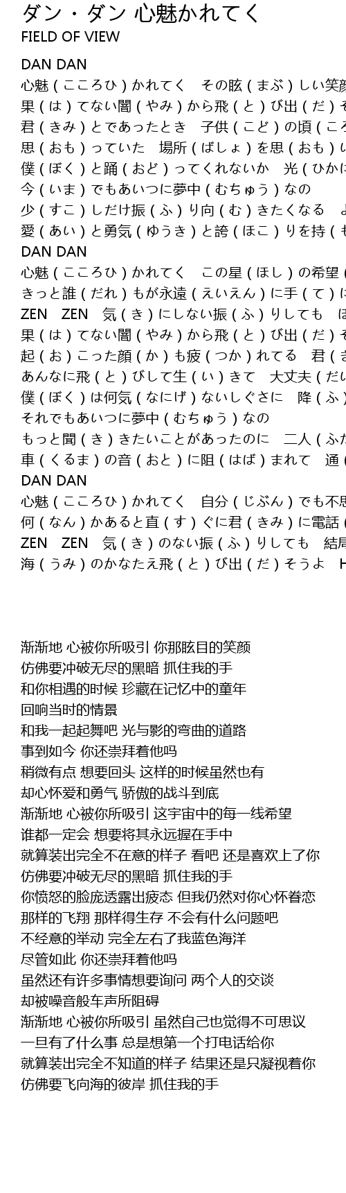 | [03:03.98] | DAN DAN 心魅(こころひ)かれてく 自分(じぶん)でも不思議(ふしぎ)なんだけど |